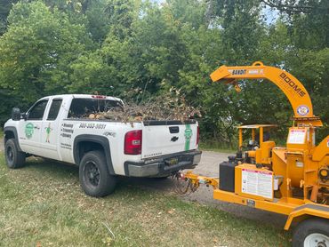 We specialize in trimming back tree branch’s and can wood chip debris on site capable of 6inches in diameter.